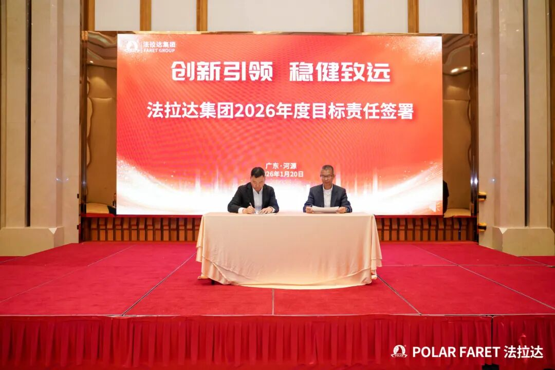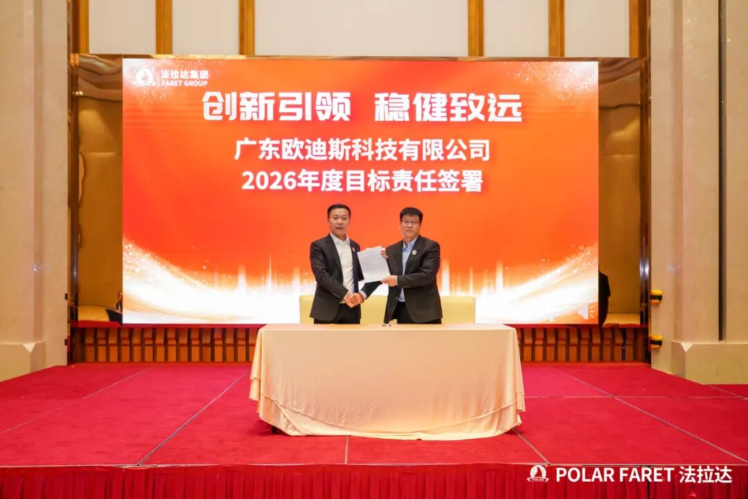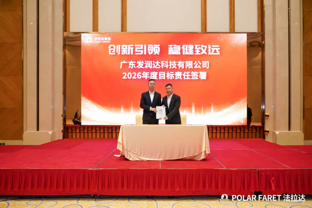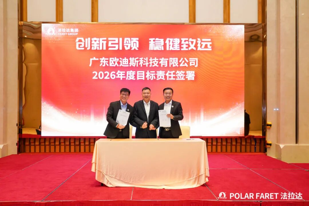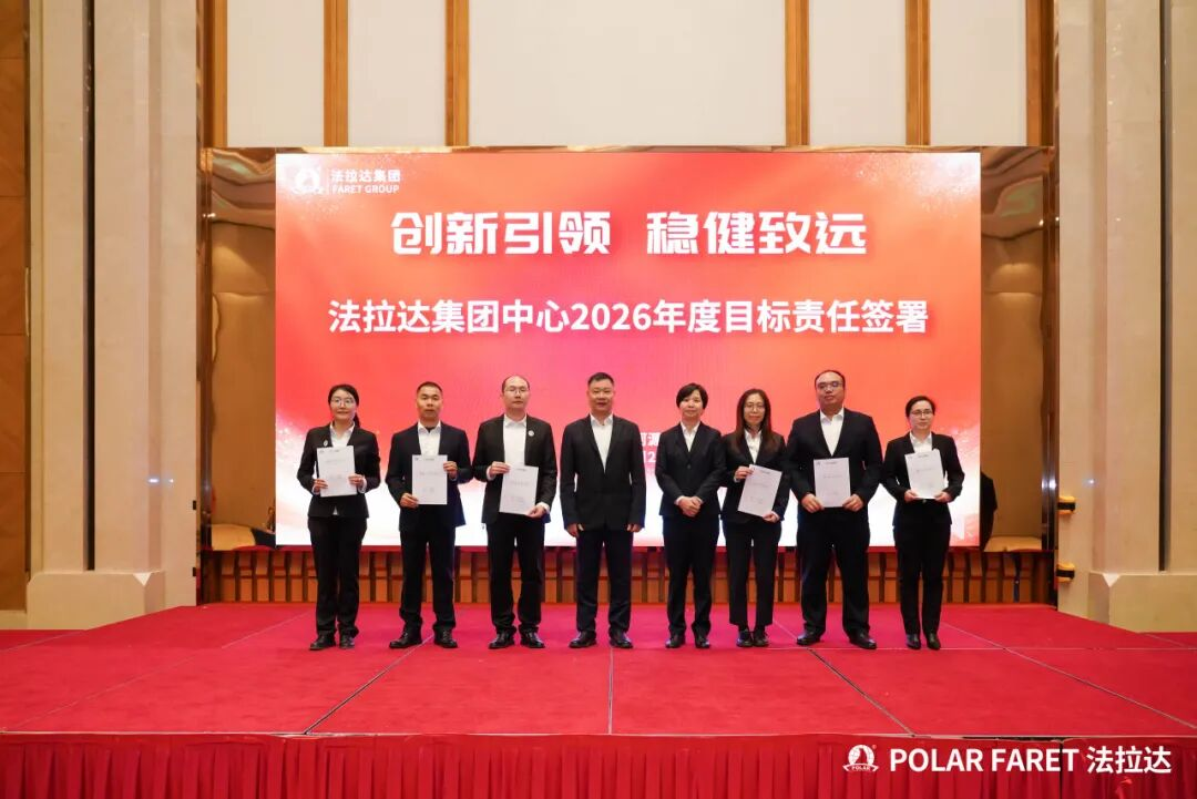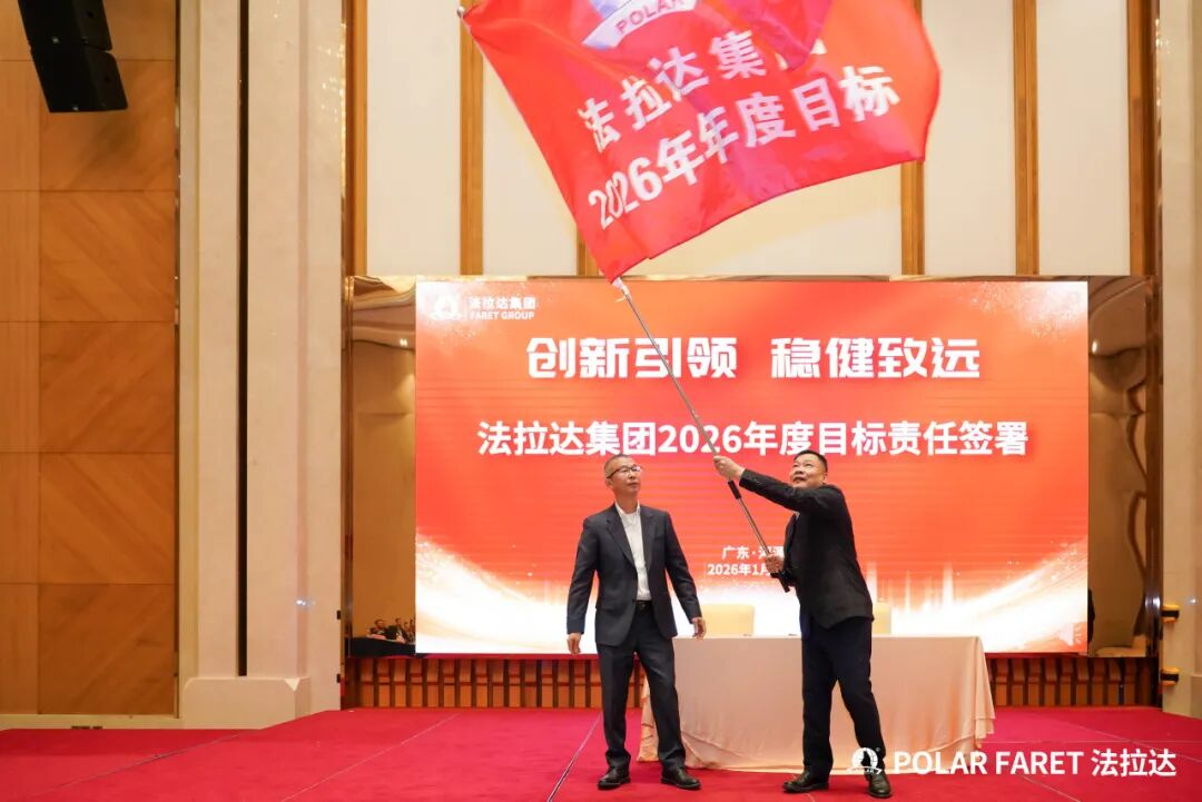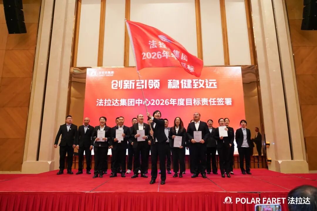 在何耀星总经理的引领下,集团下辖各子公司及中心负责人共同签署了年度目标责任书,并集体接受象征战略使命的旗帜。这标志着集团2026年度的目标攻坚战役已全面打响。全体负责人将以必胜的决心,将压力转化为号角,将挑战锻造成阶梯,展现出法拉达团队上下同欲、锐意攻坚的坚定信念。此刻,全员已整装集结,将以行动共践誓言,齐心谱写集团发展的崭新篇章。