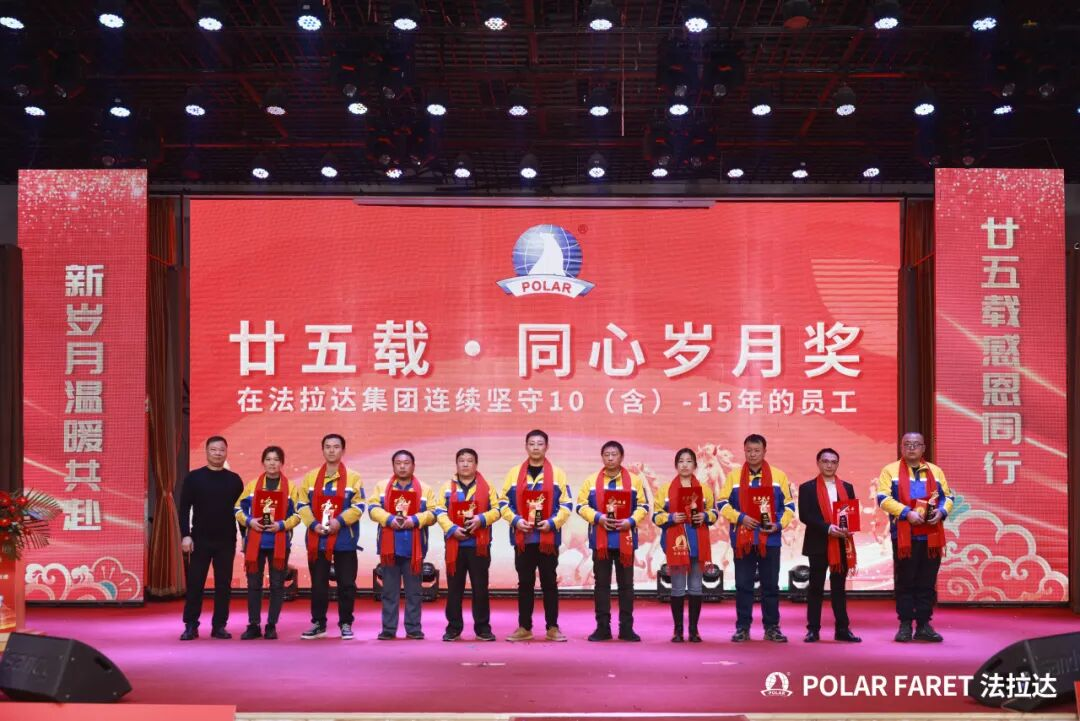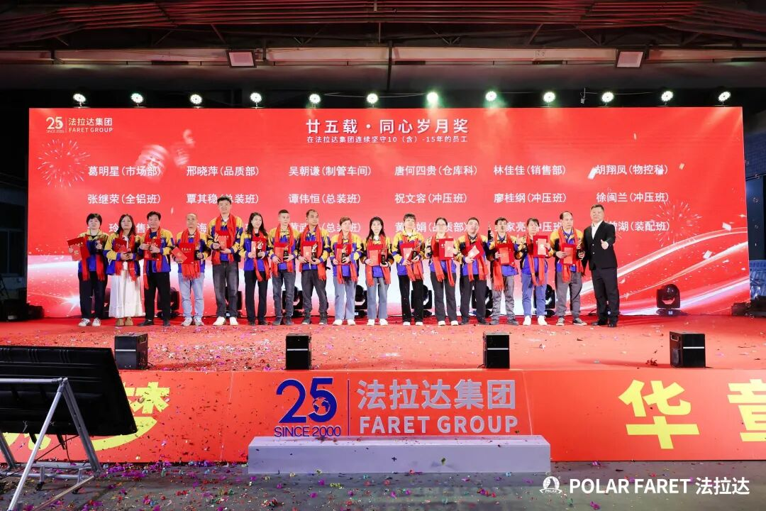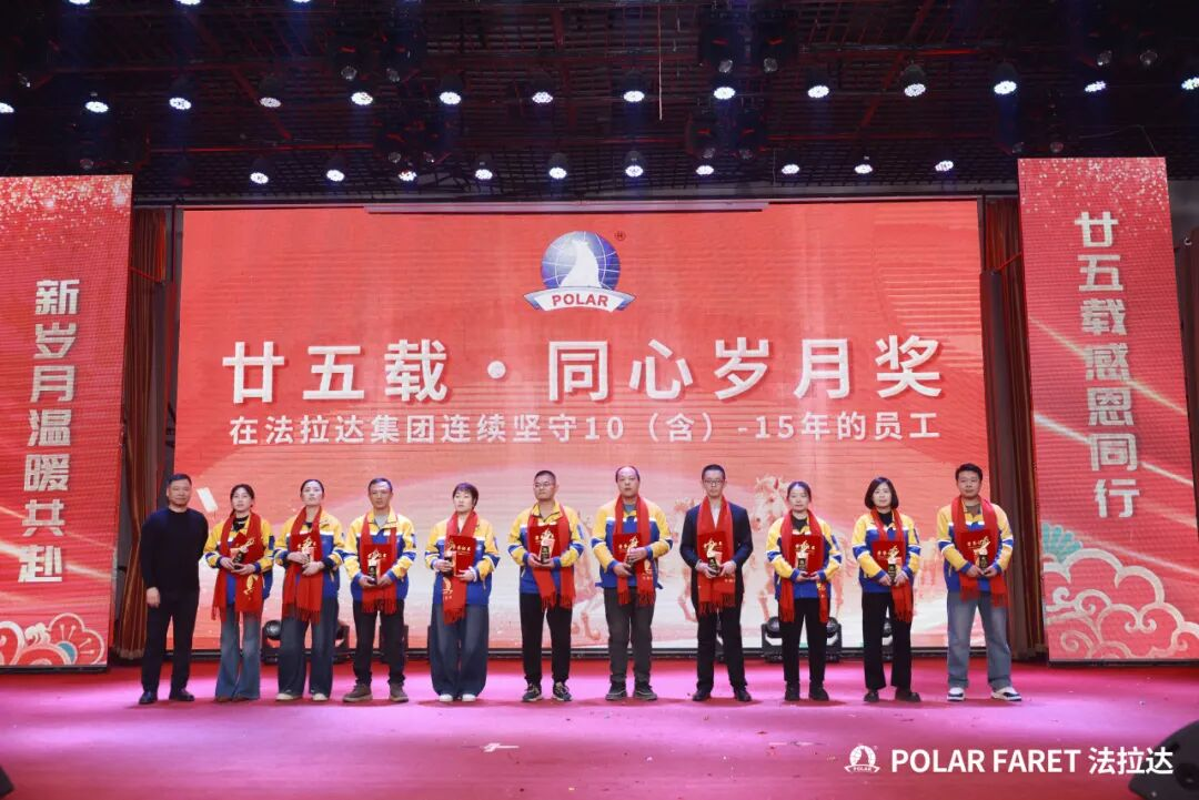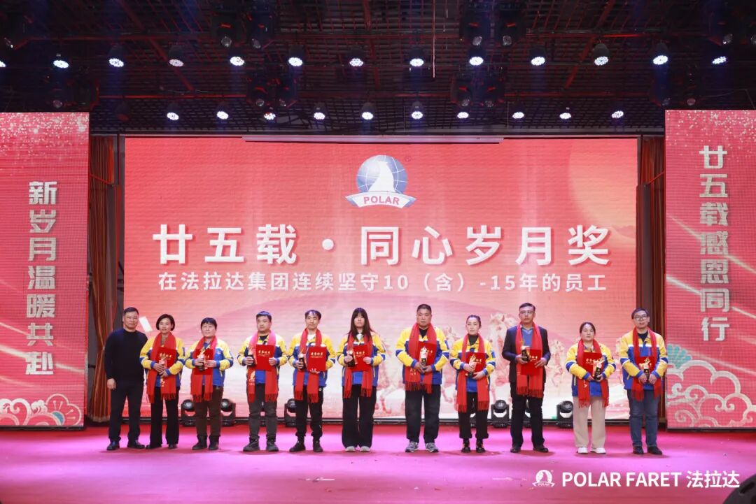 今日,我们以盛典致敬坚守,以感恩回馈相伴,法拉达集团“廿五载感恩同行 匠心筑梦”满十年及以上工龄员工表彰典礼,向这些长年坚守的法拉达人,致以最崇高的敬意与最真挚的感谢!