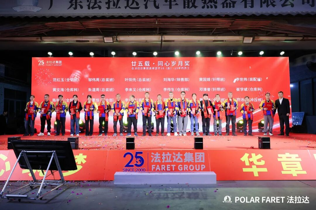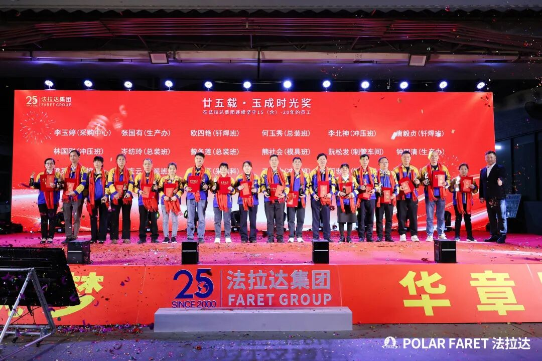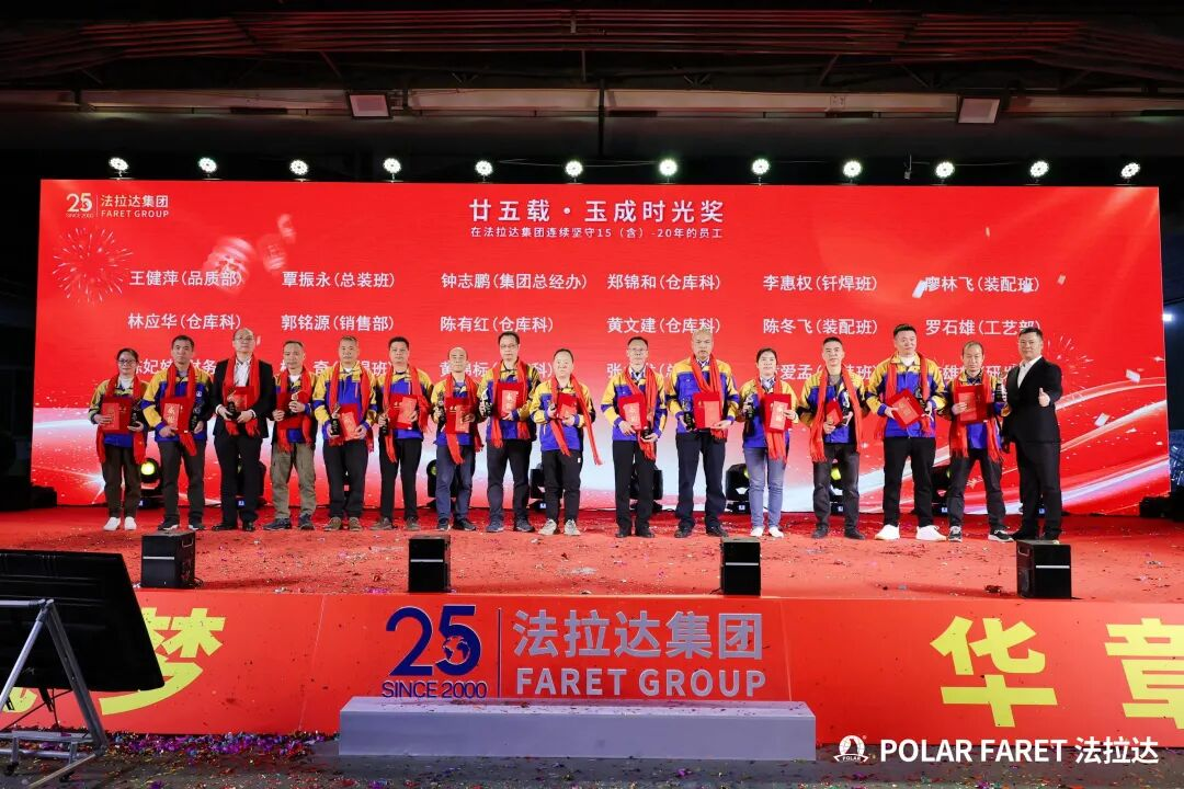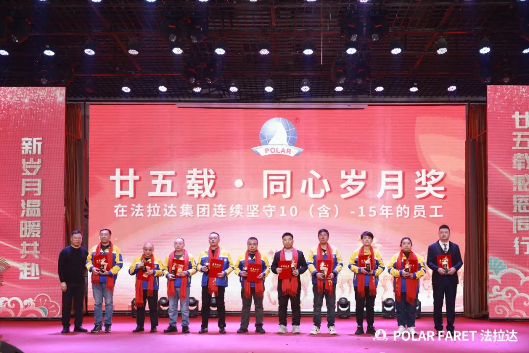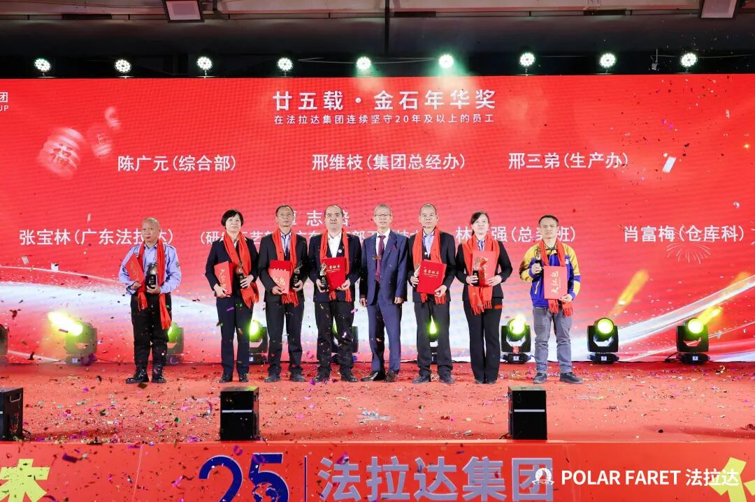 今日,我们以盛典致敬坚守,以感恩回馈相伴,法拉达集团“廿五载感恩同行 匠心筑梦”满十年及以上工龄员工表彰典礼,向这些长年坚守的法拉达人,致以最崇高的敬意与最真挚的感谢!