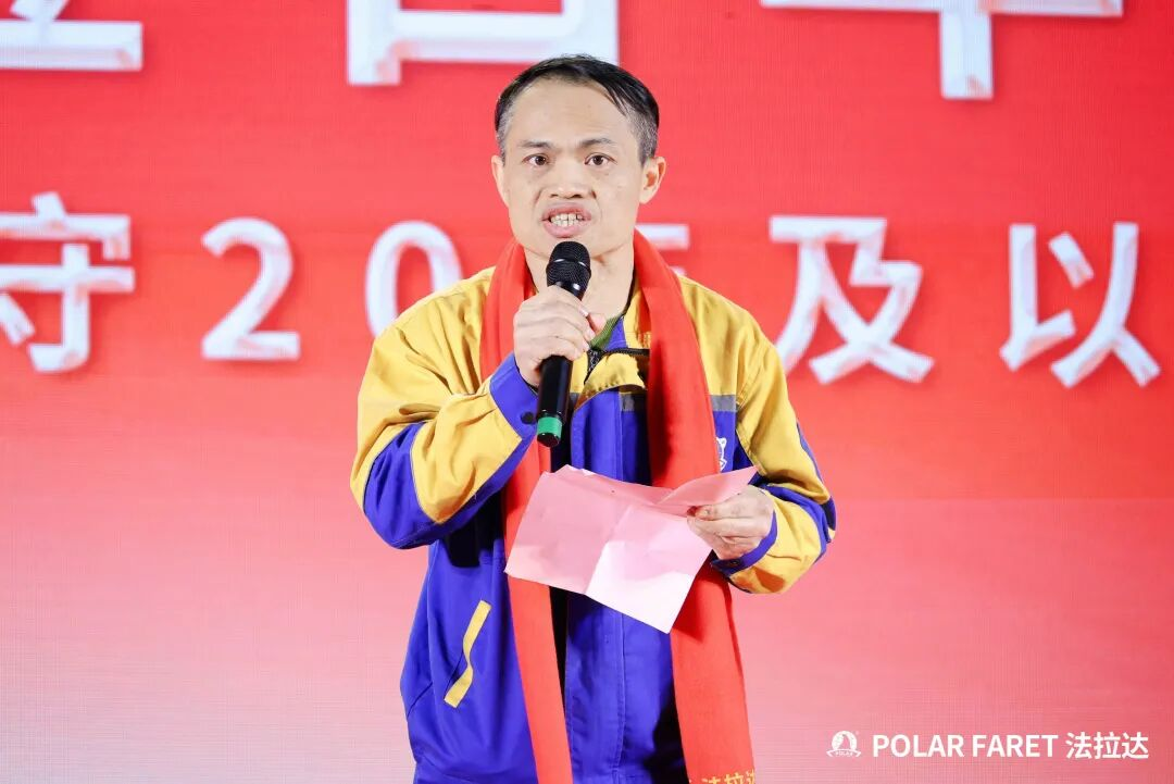 何总向为企业付出青春与智慧的全体伙伴致谢,何总感慨法拉达二十五载的发展凝聚着众人的汗水与坚守。他指出,企业最核心的财富是淬炼出的刻苦耐劳、专注务实的法拉达精神,各岗位员工的匠心付出铸就了产品质量的金字招牌,也让集团在市场挑战中站稳脚跟。站在 2026 年新起点,集团提出 “创新引领,稳健致远” 的年度经营方针,阐释其是在务实基础上勇于创新、在发展中坚守质量与责任。最后何总鼓励大家融合历史韧劲与未来冲劲、务实根基与创新翅膀,凝心聚力让法拉达在新征程续写辉煌。
