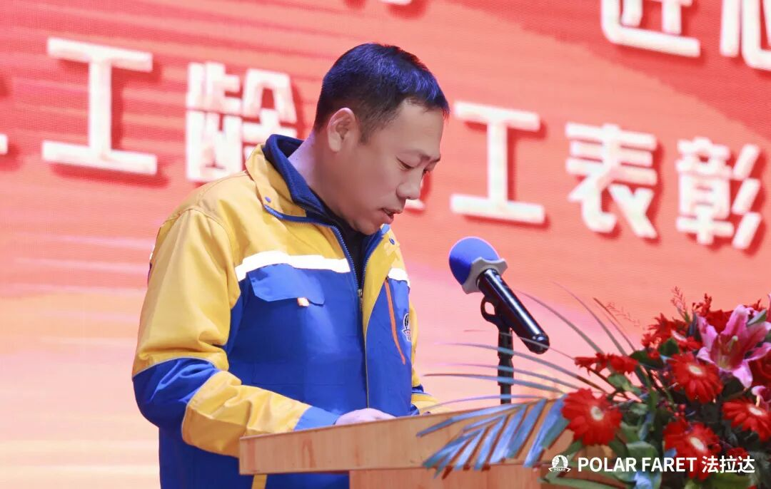 张董在现场致辞中,向工龄超十年的员工深致谢意,称其为并肩作战的战友。他表示,25岁的法拉达正对标百年梦想,将以创新探索、开放共赢、务实奋斗、专注核心的发展姿态迈向未来,并描绘了“创新驱动、智造领航”“人才辈出、活力迸发”“共享成果、温暖共赴”三大发展蓝图。张董强调,实现蓝图的关键在人,唯有全体法拉达人同心同行、凝心聚力,方能克服挑战、共赴新程。