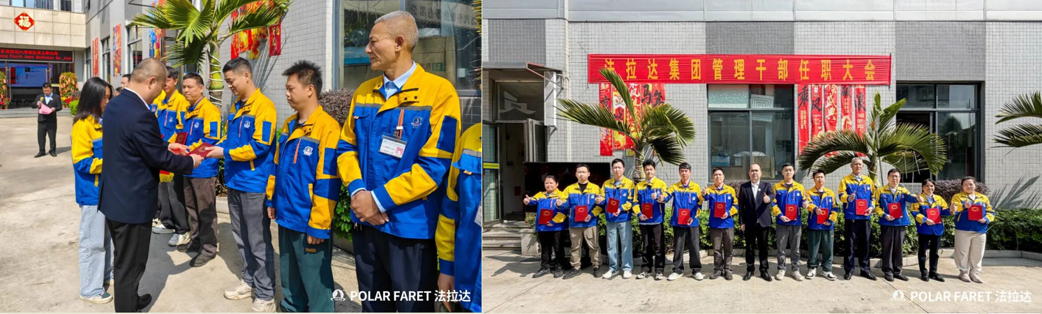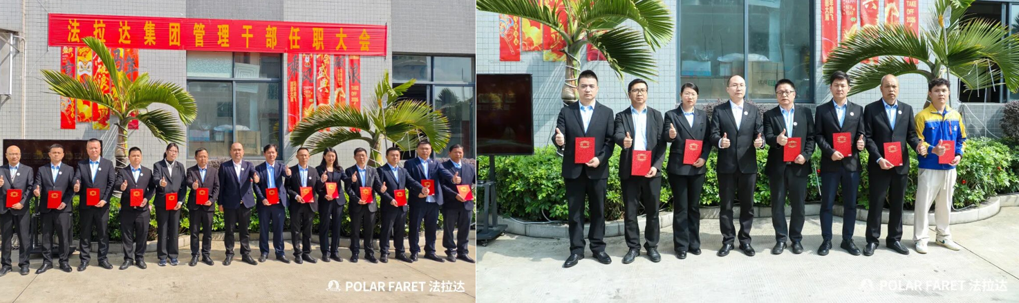 El 5 de marzo de 2026, el Centro del Grupo, Guangdong FARET, Guangdong FASTY, FARET Automotive Radiator (Tianjin), Guangdong FARUNDA y Guangdong ODIS celebraron sucesivamente solemnes ceremonias de nombramiento para el personal directivo. Todo el equipo de gestión realizó un solemne juramento, comprometiéndose a asumir el espíritu de “comenzar el año con un impulso de sprint”, practicando con acciones concretas el objetivo central anual de “Liderazgo a través de la innovación y desarrollo estable y sostenible”, y esforzándose plenamente por cumplir todas las tareas clave de 2026.