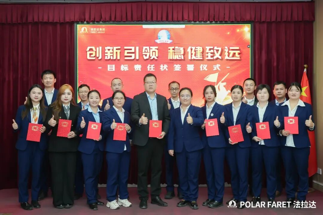 En la ceremonia de firma de la Carta de Responsabilidad de Objetivos 2026 del Grupo FARET, los principales directivos de las diferentes unidades de negocio del grupo se reunieron con un firme compromiso y plena confianza en el éxito. Firmaron solemnemente las cartas de responsabilidad de objetivos, estableciendo promesas firmes para garantizar la implementación exitosa de todas las tareas del nuevo año.
